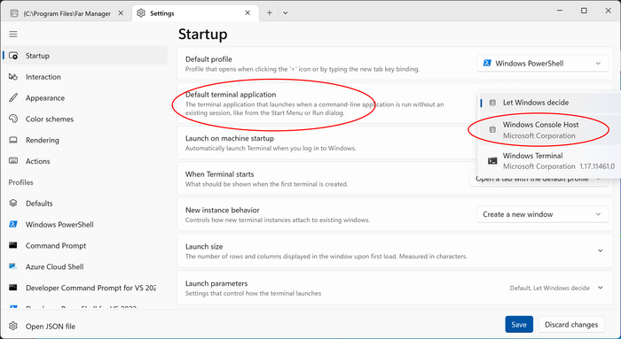 Изменяете приложение окна по умолчанию обратно на Console Host. Сохраняете изменения.
