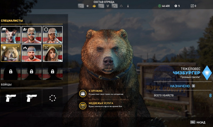 Хотите чтобы с вами бегала не тупорылая Джесс, а более смертоносный напарник? Да запросто, берите медведя с собой, или пуму, или кого-хотите. Да, приручение животных я считаю одним из преимуществ геймплея. Ведь когда с вами медведь, то он может "танковать" пока вы зачищаете очередной аванпост.