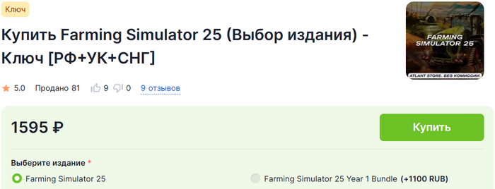 Переходим в категорию «Farming Simulator 25» и выбираем подходящий товар. Также, как и в предыдущем способе, смотрим на его критерии, внимательно читаем описание и оплачиваем.