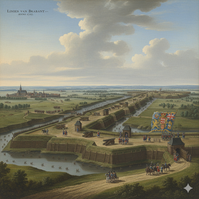В июне 1702 года Черчилль высадился во Фландрии и повел своё войско в наступление. В следующие несколько месяцев англо-голландская армия овладела крепостями вдоль реки Маас, что обеспечило союзникам надежную линию снабжения и открыло путь вглубь Испанских Нидерландов. На время зимней паузы в боевых действиях Черчилль вернулся в Англию, где королева Анна за успехи в Нидерландах пожаловала ему титул герцога Мальборо. В дальнейшем противостояние на нидерландском фронте приобрело позиционный характер в результате того, что Мальборо, хотевший навязать французам генеральное сражение, столкнулся с осторожностью своих же союзников и непроходимостью линий обороны французов, построивших "Линию Брабанта" - колоссальную систему оборонительных сооружений протяженностью более 200 км, тянувшуюся от Антверпена до Намюра. Основу этой "линии" составляли высокие насыпи, перед которыми выкапывались глубокие сухие или наполненные водой рвы. Через каждые несколько сотен метров располагались огневые точки для артиллерии и мушкетеров. Французские инженеры активно использовали шлюзы и запруды на местных реках, чтобы при необходимости затопить огромные участки местности, сделав их непроходимыми для пехоты и кавалерии. Вдоль всей оборонительной линии были проложены качественные дороги, позволявшие французским войскам быстро перебрасывать подкрепления к атакованному участку.
