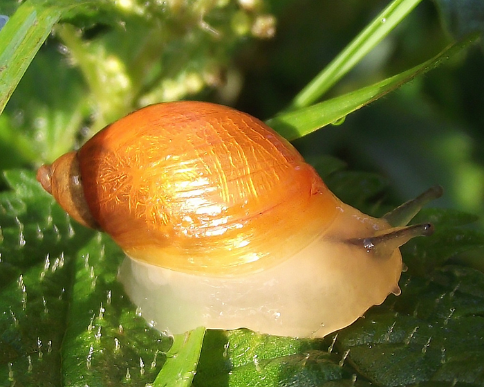 Вот так посмотришь на улиточку, улыбнёшься и подумаешь: красивая какая, рожки такие забавные. Но, на самом деле, эту янтарку стоит пожалеть, ведь она поражена чудовищным паразитом.