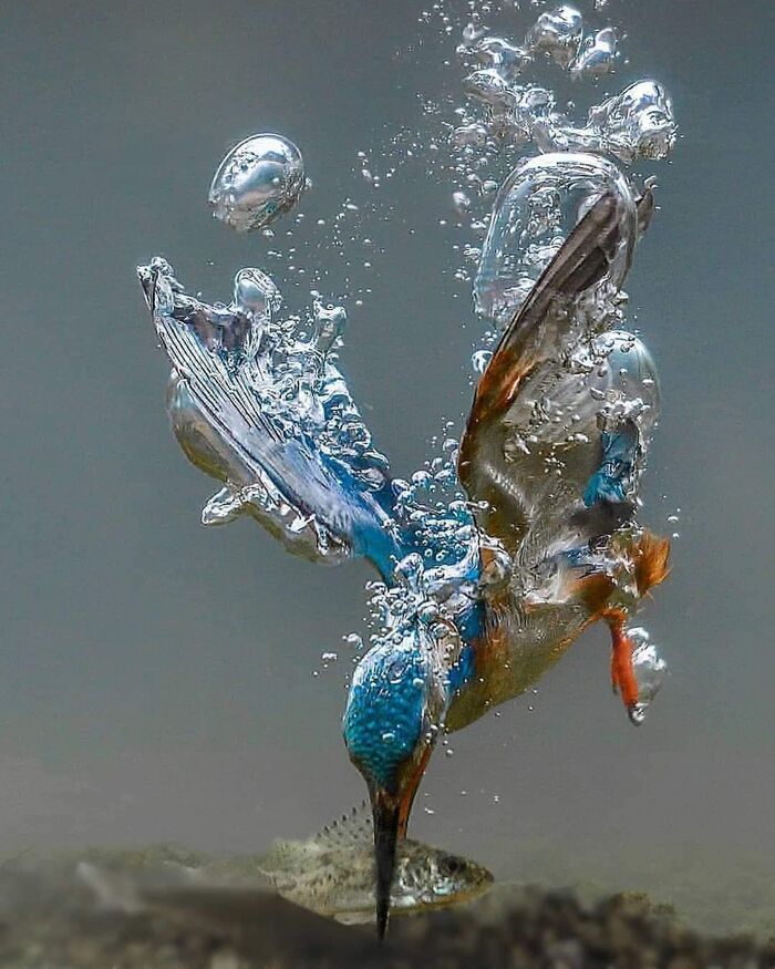 На птицах это, кстати, никак не сказывается. Ведь зимородки регулярно купаются – по поводу, а иногда и без. Повод – это, разумеется, добыча пропитания, уж в этом они точно невероятные мастера, а их техника чудо как хороша.