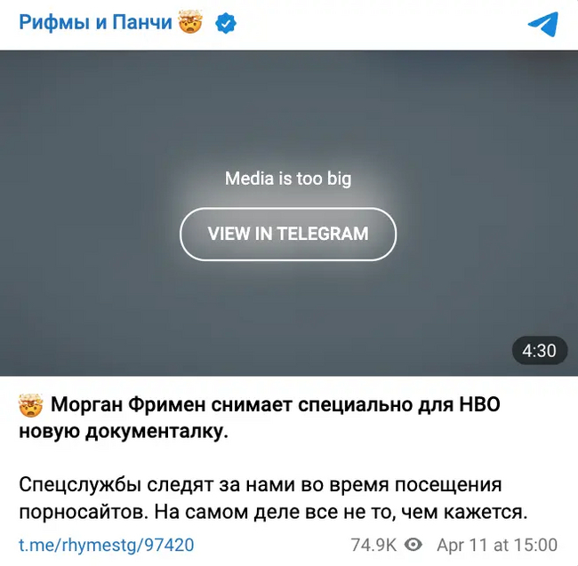 Пост о выходе документального фильма на телеграм-канале «Рифмы и Панчи»