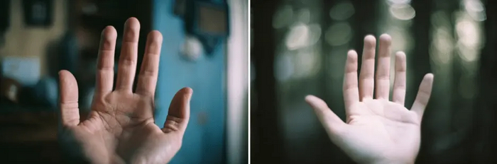 Нейросети хоть и умеют делать фотореалистичные фотографии вымышленных людей, но им все еще тяжело справиться с генерацией рук. У Midjourney пятой версии, конечно, получаются качественные и детализированные изображения людей, правда с шестью, а иногда семью пальцами довольно странной формы.
