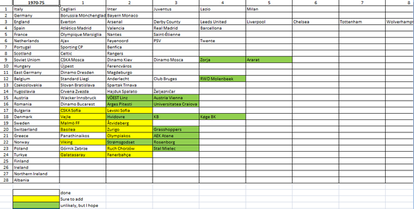 Тут была ещё одна трудность. В реальности чемпионат тогда игрался так: 2 круга (22 тура), далее разбитие на две шестёрки и ещё раз по два круга (10, вместе 32). У меня так сделать не получилось, при переходе от первого этапа ко второму где-то накосячил. Пришлось брать Данию, где просто 3 круга, т.е. 33 тура. Как видите, на 1 больше.