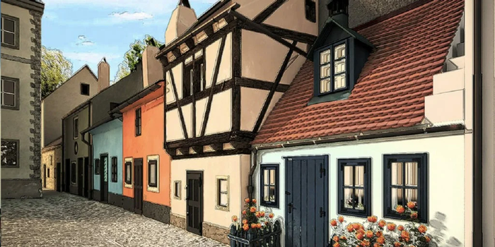 Когда-то здесь была просто крепостная стена с арками, но в 1597 году король Рудольф II издал указ передать пространство под арками двадцати четырем стражникам, которые защищали город и охраняли заключенных из женской тюрьмы. Так, под арками появились небольшие домик. Когда-то их было больше и они стояли с двух сторон улицы, при этом расстоянии между ними было чуть больше метра.
