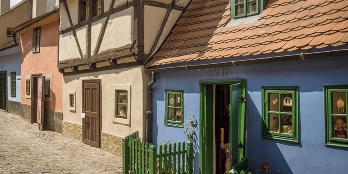 В Праге, наверное, можно найти всё, в том числе «золотую улицу» или Zlatá ulička (так же многие называют его переулком алхимиков). Золотой переулок располагается на восточной стороне Пражского Града, рядом с базиликой святого Йиржи. Переулок состоит из шестнадцати старинных крошечных домиков, которые встроенные в арки бывшей крепостной стены. Девять домиков отданы под небольшие музеи, которые показывают быт бывших обитателей этих зданий. Остальные домики используют как сувенирные лавки.