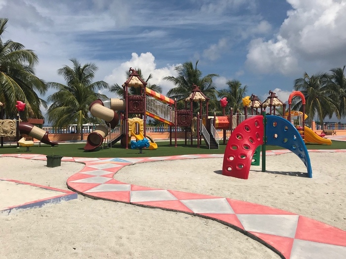 На острове есть бикини пляж для туристов. Располагается он возле домашнего рифа и довольно чистый и ухоженный. На нем вас ждут гамаки и даже туалет. Пока пляж небольшой, но с каждым годом пляж становится все больше, отвоевывая место у пляжа для местных. При нас рабочие в ночное время расширяли его, засыпая землю песком (жаль, что у нас все дорожные работы в России проходят днем, а не в ночное время). На пляже есть пальмы, которые защитят вас от палящего солнца. Песок — чистый, белый и мелкий! Заход в море пологий и без всяких кораллов. Идеально место для отдыха с детьми. Домашний риф располагается в метрах 20-30 от берега. Проще всего доплыть до него, если пройти по пляжу (влево, там где лодки стоят) до места отдыха местного населения и уже от туда начать заплыв. На рифе довольно много разноцветных рыбок, а по утрам говорят приплывают черепахи.