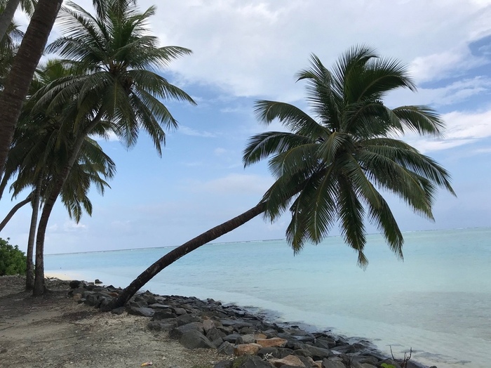 На этом острове нет машин и почти нет мопедов — хозяин геста встретил нас с тележкой для перевозки багажа. Вместе с ним мы пешком дошли до отеля Mathiviri Inn. По дороге мы заглянули в местную пиццерию (да, они существуют на Мальдивах), где нас угостили прохладным кокосовым соком. От пиццерии до нашего отеля всего пару минут ходьбы. Остров очень чистый — по утрам местные жители убирают мусор и подметают улицы.