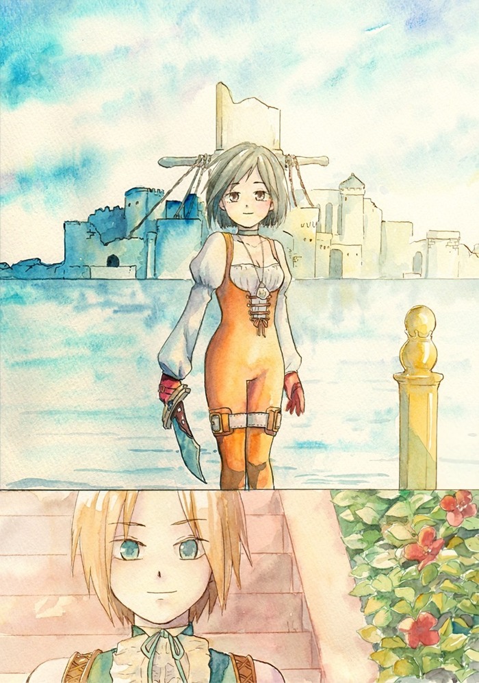 Дальше по сюжету, в Александрии к нам присоединится принцесса Гарнет( полное имя - Гарнет Тил Александрос), которая не очень довольна придворной жизнью. Естественно, главный герой влюбляется в принцессу по уши при первой же встрече и помогает ей бежать из дворца. Позже к нам присоединится маленький и забавный чёрный маг Виви, с душещипательной историей, уроженец деревеньки Дали. За принцессой увязывается начальник стражи Плуто Штейнер, который, по-отечески, любит принцессу и готов ради нее на все. Маленькая девочка Эйко 6 годов от роду, которая живёт в деревеньке призывателей со своими монстрами и муглами( она в роде бы окажется сестрой Гарнет, насколько я помню, уж простите за спойлер).