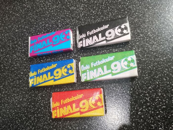 Вкладыши Final-90. Вкладыши посвящены чемпионату мира по футболу, прошедшему в Италии. Всего в серии 70 номеров. Собрал почти всё. Не хватает только №57 с колумбийским футболистом Карлосом Вальдерамой (прическа «микрофон»).
