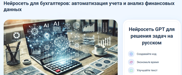 ruGPT — специализированная нейросеть для бухгалтеров, адаптированная под российское законодательство, помогает с проводками, отчетностью и консультациями.