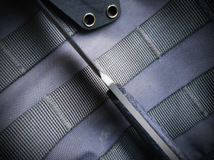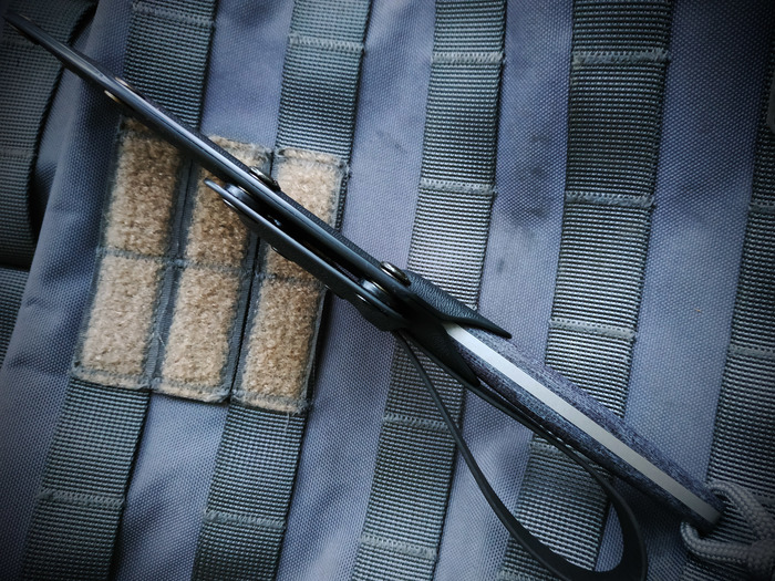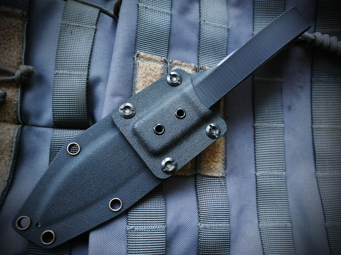 2) горизонтально (под углом) – при помощи полусвободной поясной петли из KYDEX.