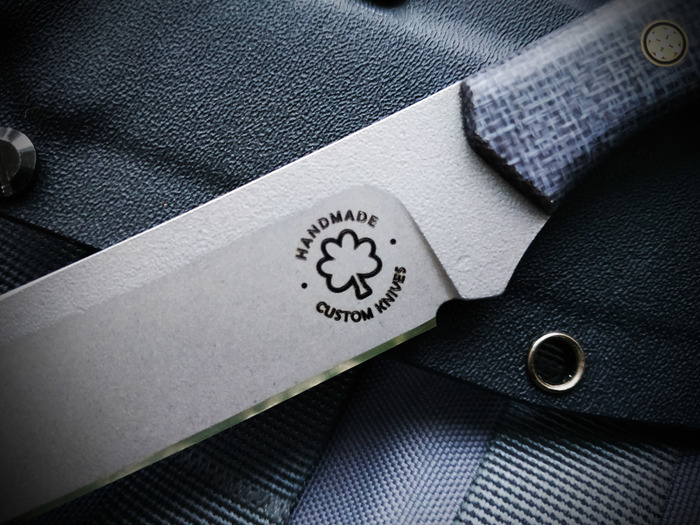 Оформление клинка: галтовка («gray stonewash»), лазерная гравировка.