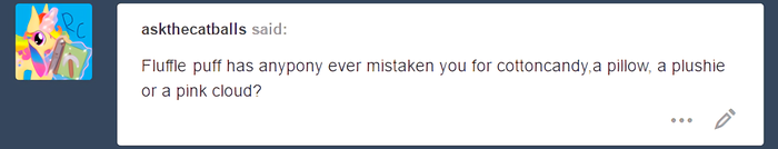 36 Acerodon My Little Pony Флаффл Пафф, кто-нибудь путал тебя с сахарной ватой, подушкой, плюшкой или розовым облачком? 7 лет назад Автор: Mixermike622Источник: Tumblr Показать полностью 9 My Little Pony Комиксы Fluffle Puff Queen Chrysalis Pinkie Pie Applejack Cutie Mark Crusaders Rainbow Dash Длиннопост Flufflepuff622