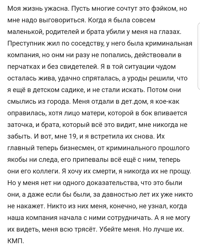 Сокращения в тексте: КМП - КиллМиПлиз, ПМП - ПристрелитеМеняПожалуйста