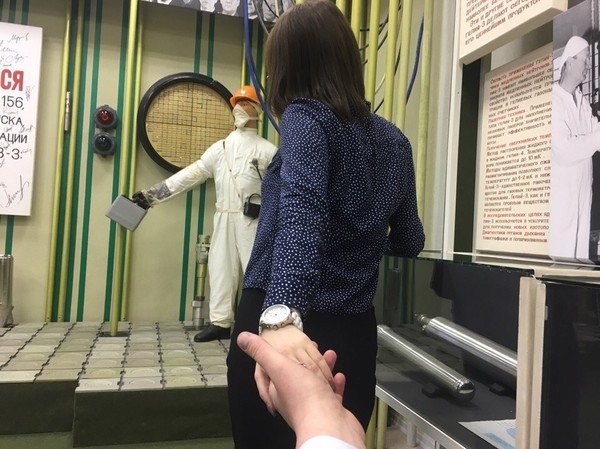 Креативные единицы производственного объединения "Маяк" (которое выпускает компоненты ядерного оружия) присоединились к всемирной фотоакции "Следуй за мной". Суть "Следуй за мной" в том, что интересные пейзажи или отдельные объекты фотографируются из-за спины девушки-экскурсовода.