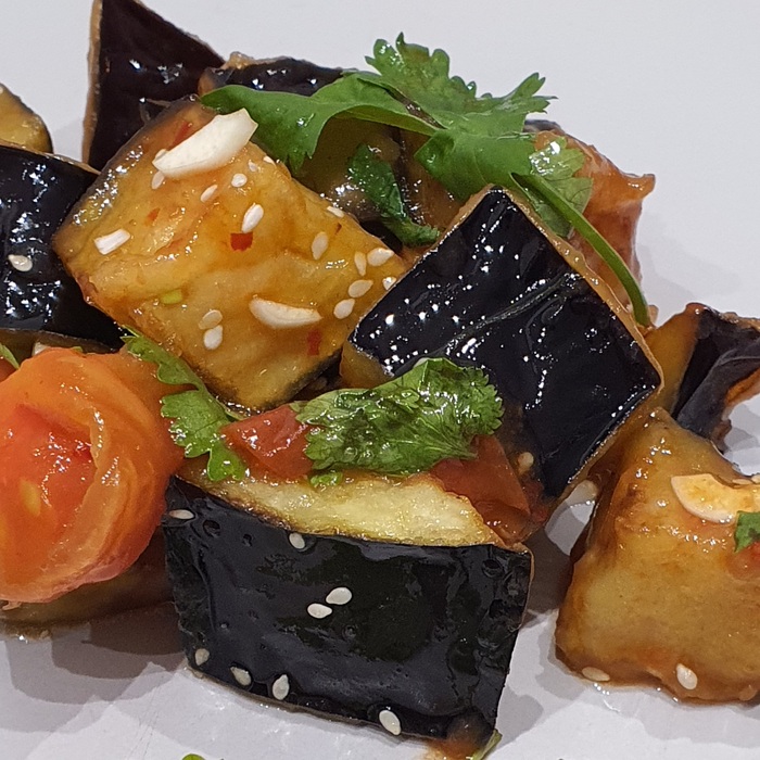 Тёплый салат из баклажанов и помидоров: