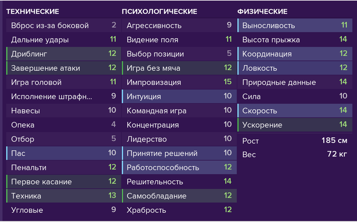 К чему это я? Я предлагаю вам попытаться применить свои когнитивные способности в целях опознавания того или иного футболиста реального мира по его профилю в игре, в котором отображены, скажем так, его оцифрованные способности (или как говорят сами игроки Football Manager - скиллы).