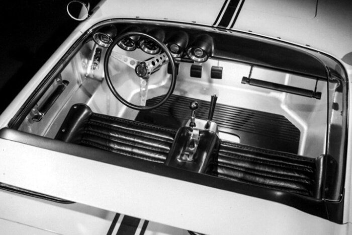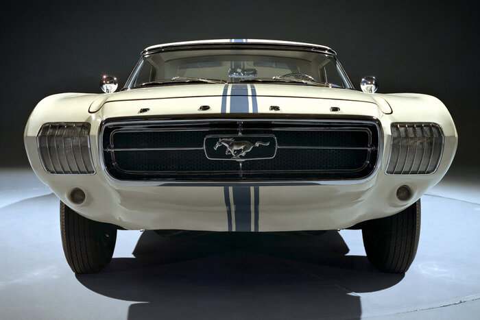 Прежде чем идея воплотилась в серийном «пони-каре», ее прощупывали на концептах. В частности, на легком футуристическом Mustang I со среднемоторной компоновкой и скромной 1,5-литровой V-образной «четверкой» мощностью 111 л.с. Сущий мизер на фоне агрегатов топовых серийных «Мустангов», но вполне достаточно, чтобы выжать свыше 160 км/ч под чутким контролем гонщика Дэна Гёрни на треке Уоткинс-Глен.