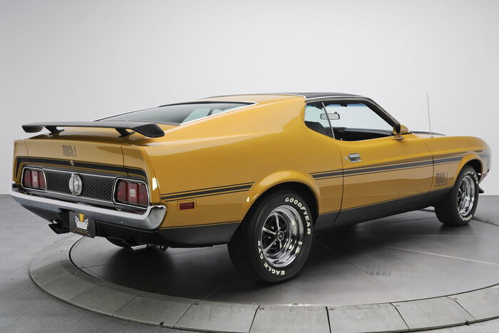 Финальный Mustang 1971–1973 модельных годов весьма противоречив. Он далеко ушел от своих корней и это не метафора. Длина достигла 4813 мм, ширина — 1882 мм. Некогда компактное семейство изо всех сил тянулся к мидсайзам волей нового президента компании Семона «Банки» Нудсена.