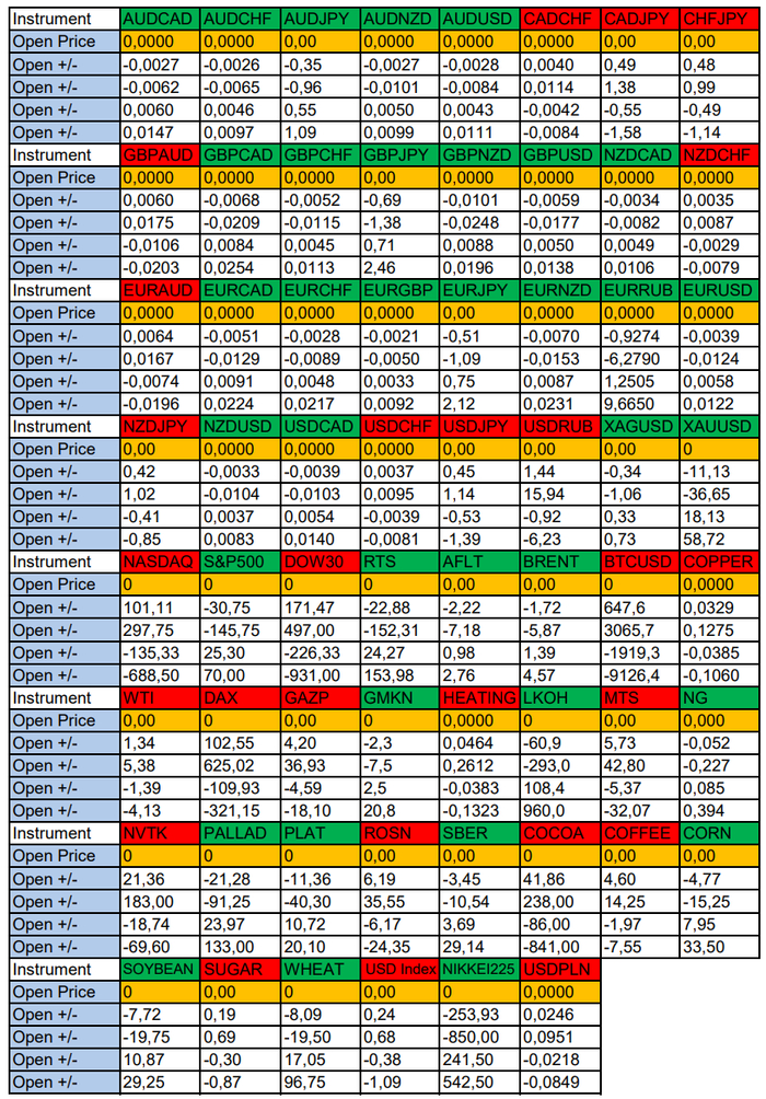 Весь перечень анализируемых активов указан ниже в общем количестве 62 инструмента. Здесь Вы найдете активы рынка Форекс, популярные активы Московской биржи, не менее популярные активы Чикагской биржи СМЕ и мажор криптовалютного сегмента - Биткоин, за которым следуют все альткоины.
