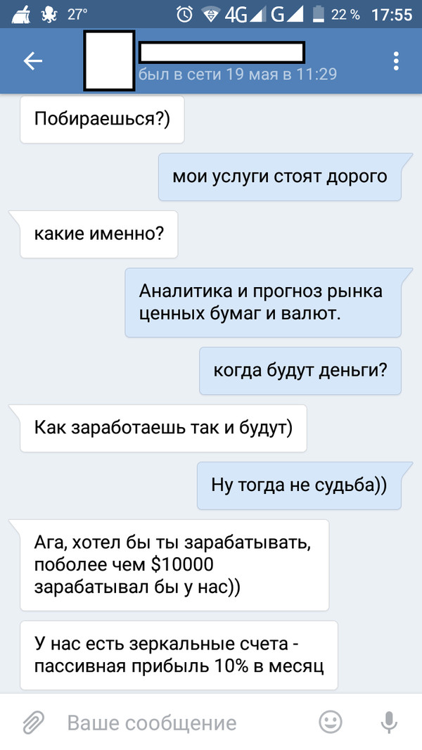 Я сделал несколько сотен безрезультатных звонков, поэтому мой боевой настрой был сильно подкошен. Первый блин комом, конечно, но другого такого шанса, может и не быть. Деньги потратил, а взамен ничего не получил. Печальные мысли были в моей голове: надо быстрее сворачиваться и искать себе обычную работу, ничего не выйдет, опозорился и хватит. Забавно получается, хотел разводить людей на деньги, а в итоге сам остался без них. Подобные размышления отбили у меня всю мотивацию пытаться дальше, что-то делать, как вдруг раздался звонок.