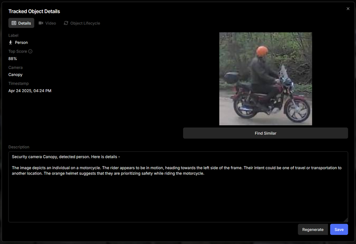 Проект удался: я получил умную систему видеонаблюдения, которая работает полностью локально и не уступает во многом облачным аналогам. Frigate 0.15 приятно удивил функционалом: поиск по описанию действительно находит нужные кадры, и больше не нужно пролистывать часы записи в надежде увидеть, когда приходил почтальон. Достаточно вбить пару слов.