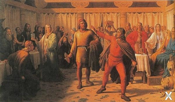 Поэтическое состязание, описанное Баннатайном, содержит множество забавных оскорблений. Например, Данбар высмеивает горский акцент Кеннеди, его несуразную внешность и заявляет, что его соперник — тот еще любитель сношать коней. Кеннеди парирует и утверждает, что Данбар — не только брехливый коротышка и неистовый пердун (что всем и так известно), но и замечен за тем, что сосет лягушачью икру из грязного пруда. Туше! — такой козырь действительно почти невозможно покрыть. Но мы, к сожалению, так и не знаем наверняка, кто из великих поэтов-матершинников выиграл тот бой.