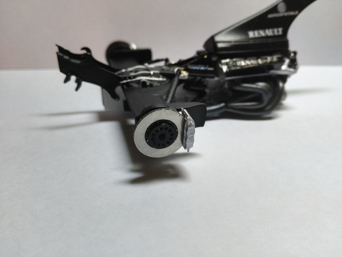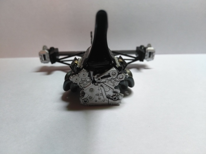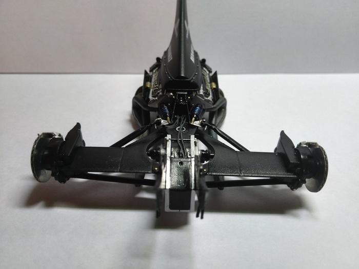 Самый стрёмный момент заключался в фиксации колёс с передней подвеской так, чтобы ничего не сломалось (ведь у модели рабочий механизм поворота колёс). Благо, у деталей очень крепкий пластик и все манипуляции при сборке он выдержал.