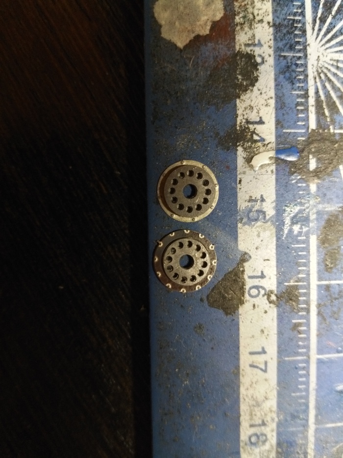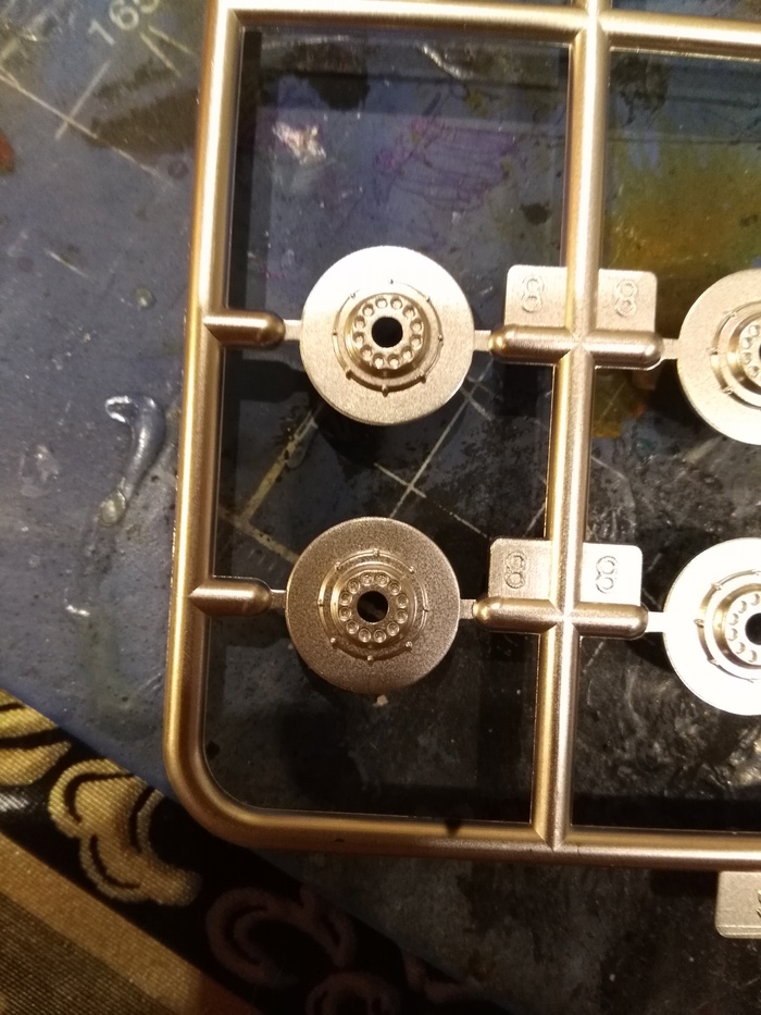 Интересное решение: с обратной стороны колёс имеется цилиндрическое отверстие, куда плотно вставляется полурезиновая втулка с отверстием, и уже на него происходит фиксация с шасси БЕЗ КЛЕЯ. Таким образом, колёса сохраняют подвижность.