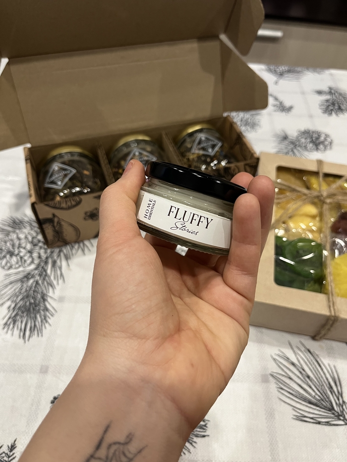 Свечка пахнет просто изумительно, слов не подобрать, пахнет сладкой елочкой)
