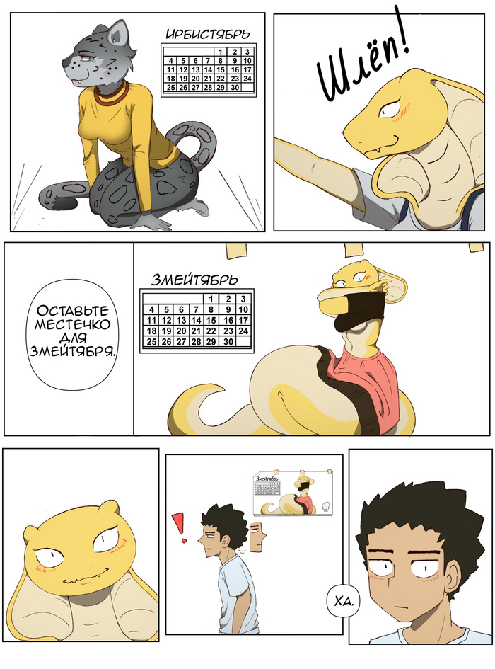В оригинале Sneptember (месяц снежного леопарда) и Snektember (месяц змей)