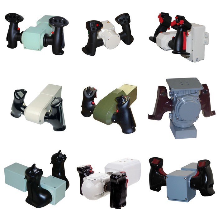 Собрав в интернете изображения джойстиков оператора-наводчика для различных танков и бронетехники. Вижу что у современных танков органы управления оператора-наводчика достаточно похожи. Отклонением рукоятей по двум осям выполняется наведение орудия на цель. Разумеется у различной техники рукояти сильно отличаются по своей форме и количеству кнопок и переключателей на них.