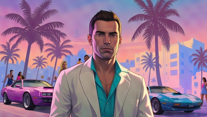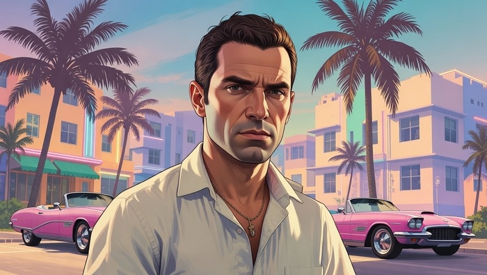 Ваш портрет в стиле промоарта долгожданной GTA 6: солнечная Флорида, пастельные тона, новый виток истории.