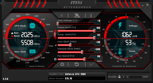 Для повышения нагрузки и температуры графического процессора видеокарта была разогнана до максимально возможных для данного семпла Gigabyte GeForce GTX 1080 G1 Gaming значений.
