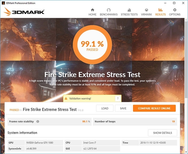 В качестве нагрузки на видеокарту мы использовали девятнадцать циклов стресс-теста Fire Strike Extreme из пакета 3DMark. Этого более чем достаточно для достижения стабильных температур, тем более что проводилось две последовательных сессии такой нагрузки.