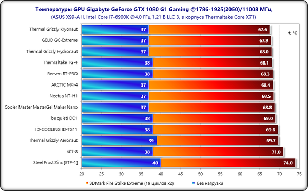 Итак, результаты сравнения эффективности термопаст представлены на следующей диаграмме.