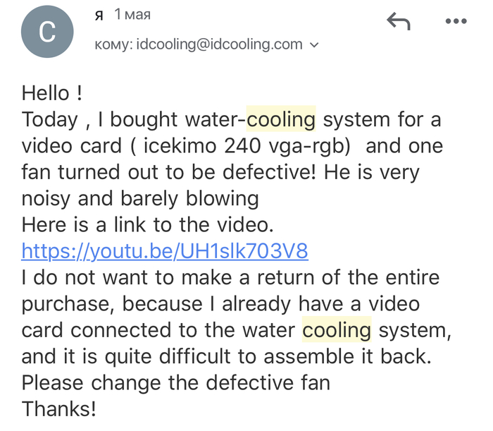 Я написал в магазин , что один из двух вентиляторов не работает , приложив видео к письму. Поскольку у меня уже видеопамять и vrm были проклеены радиаторами , возвращать плолностью комплект было почти нереальным делом.
