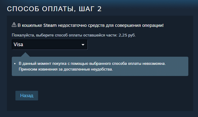 Ваш богоподобный Габен просто взял и выключил любые способы для РФ игроков на пополнение. Может у меня есть казахстанская Visa? - иди на хуй, Может есть американский MasterCart? - иди на хуй. Просто потому что у тебя Россия на аккаунте, мы тебе все доступные способы выключим, мало ли ты сволочь такая что-то там имеешь.