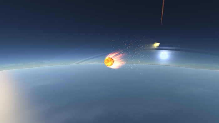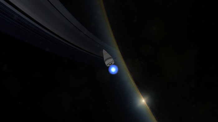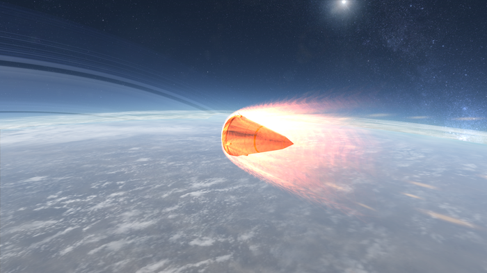 Настало время садиться. Из-за неудачной орбиты, пролегающей практически по терминатору, посадка усложнялась. Да, третье поколение зондов "Первопроходец" способно работать и в темноте, энергию ему дают РИТЭГи, но хотелось бы сесть на свету. Поскольку я прилетел в разгаре зимы в северном полушарии, первый зонд решено было сажать на южную полярную шапку. Зонд успешно отделился от перелетного блока, произвел корректировку орбиты, затем деорбитировался, сбросил двигательный блок и вошел в атмосферу. Атмосфера Грациана более плотная, чем у Нивена, поэтому и щит установлен побольше, и горение продолжалось дольше. Затормозившись и войдя в плотные слои атмосферы, зонд ввел парашюты и начал снижение, попутно передавая научные данные из верхов атмосферы.