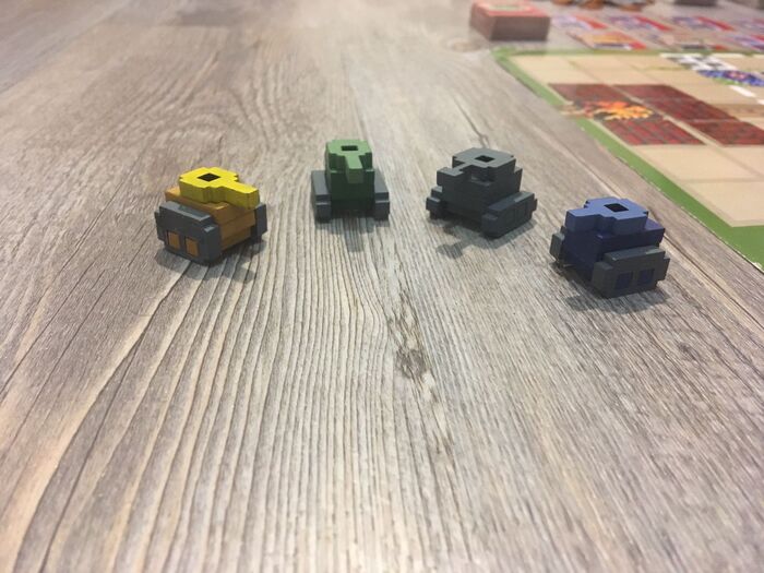 В моей ранее изданной издательством Экономикус настольной игре "Танчики", мы, совместно с компанией Meeplewood, сделали цветные деревянные фишки танчиков. Они очень понравились игрокам - теплое ламповое дерево и знакомый пиксельный силуэт.