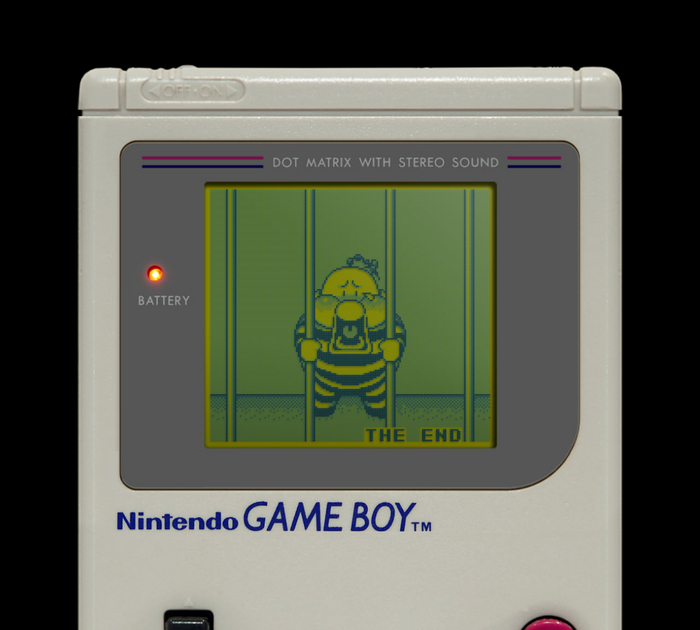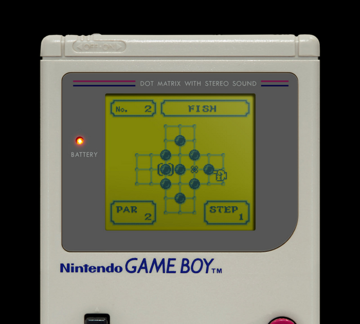 Game Boy – легендарная 8-битная консоль от Nintendo с чёрно-белым экраном.