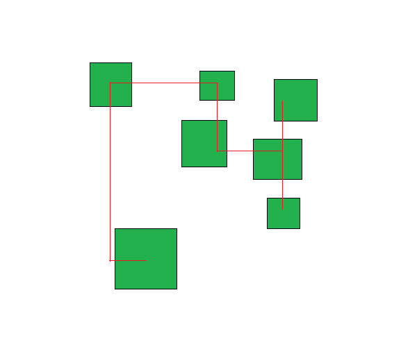 Итак, самое основное сделано - теперь мы знаем что связать друг с другом и как это сделать. Самое время построить туннели, ведь ради них все и затевалось. Но не так все просто оказалось, нежели я думал. Сначала я взял самое очевидное решение - построить из центра одной комнаты палку вверх, а из центра другой - палку в сторону. И знаете что?