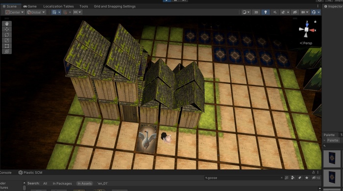 4. Набросок в Unity. Составление из карт местностей примерного силуэта локации и «троп», по которым будет ходить игрок.