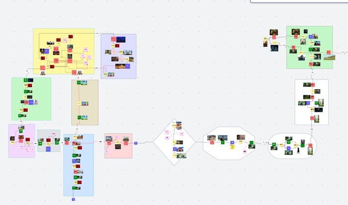 Так вот, несмотря на тонны полученной информации, разработка уровней игры у нас происходит по довольно кустарной схеме из 6 пунктов: 1. Расписывание сценария. Мы со сценаристом прописываем и проговариваем все события, которые должны происходить в той или иной локации, обговариваем персонажей, второстепенные диалоги и активности.