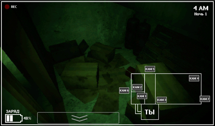 В первые же дни, 15 января 2022, я набросал локацию, камеры и движение противника. В этом мне помогли видео, где автор делал свою версию фнафа. Тогда я назвал проект просто "эксперимент".