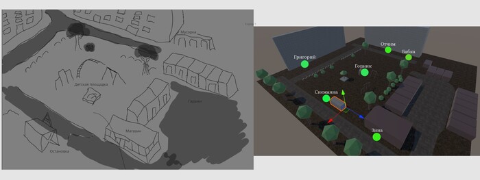 Создавать локации для прототипа оказалось не так сложно — достаточно взять обычный двор русской провинциалки и перенести в него узнаваемые объекты с фотографий с помощью текстурной прорисовки и фотограмметрии.