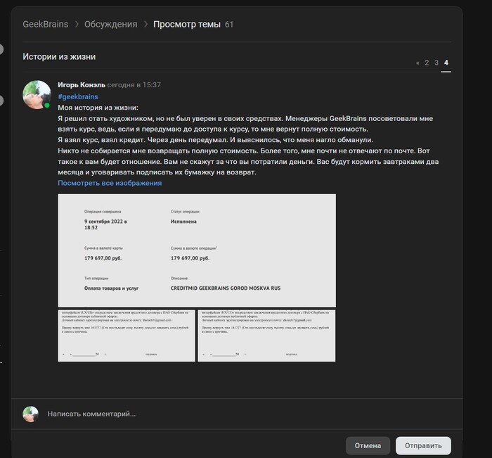 Зацените, житель маленького города Кирово-Чепецка (это Кировская область) заказал курс по искусственному интеллекту на Geek Brains за 200 тысяч рублей, потом понял, что эти курсы полная херня и взыскал с них обратно 200 тысяч и еще дополнительно 100 тысяч в качестве штрафа за отказ от добровольного расторжения договора обучения.