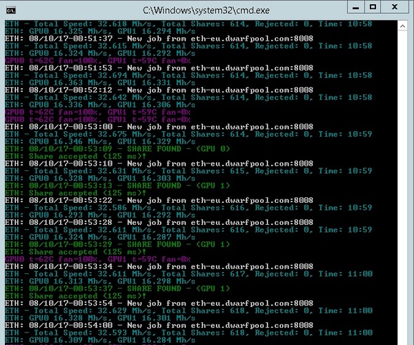 Регистрируемся на бирже, например, exmo.me. Там создаем кошелек для эфира (интуитивно понятно). Скачиваем Claymore's Miner v9.8 В нем в bat файл вставляем